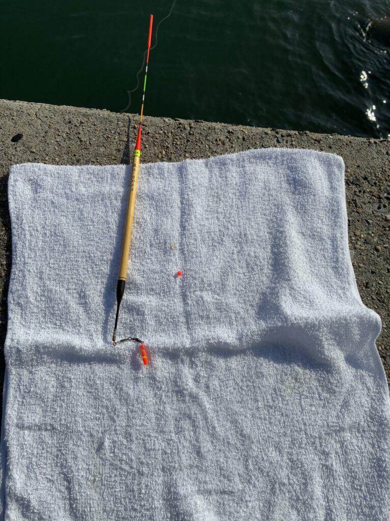 竿5.4メートル リール2000 ちぬウキ0.8号 オモリ0.8号 道糸2.5号 ハリス1号です